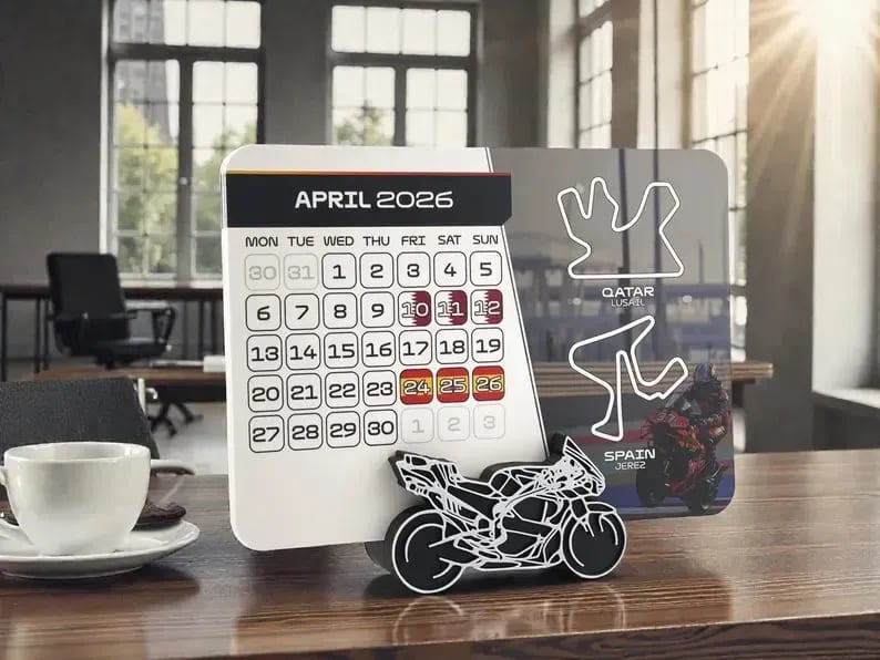 Immerse yourself in the 2026 MotoGP season with this minimalist calendar and race schedule combo. All 2026 Grand Prix weekends are uniquely marked on their respective days. Also included in the calendar are some bonus events and additional important days to keep an eye out for as a fan of motorsport. These 2026 race schedule calendars are always made to order.